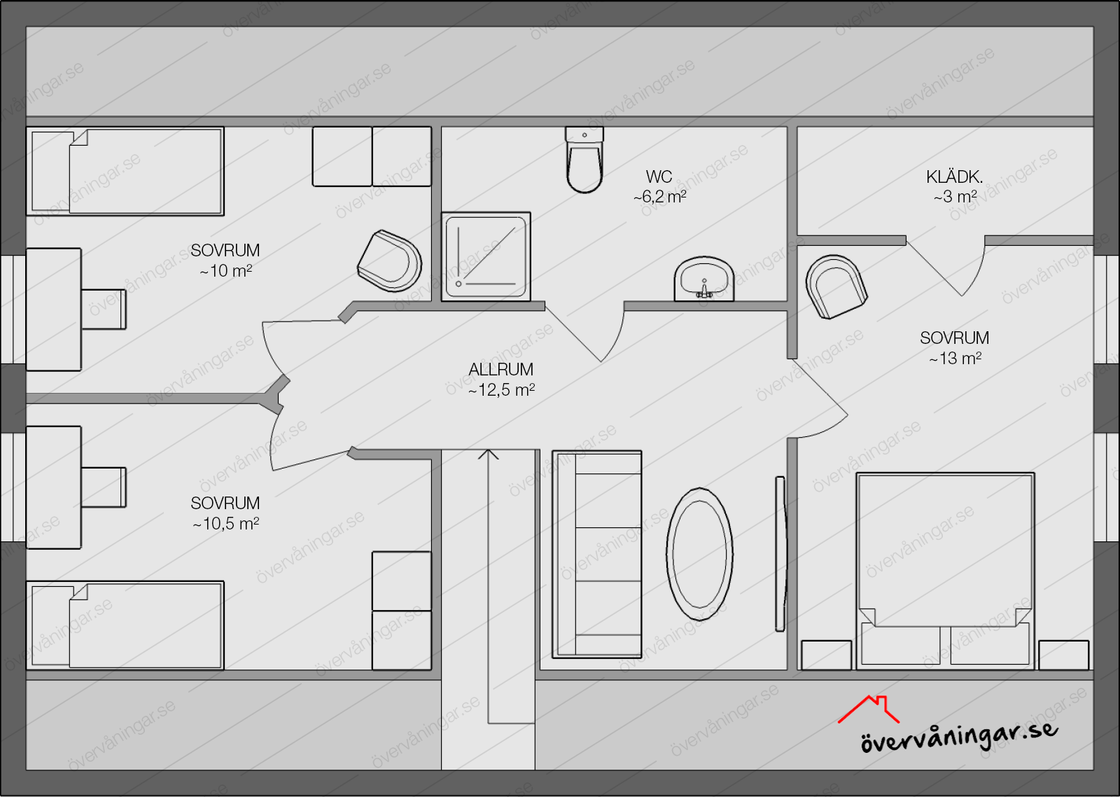 Hur många sovrum vill du ha? Walk in closet, kanske med öppning från något av sovrummen? Vill barnen ha en inredd myshörna med kojkänsla i sina rum? Givetvis anpassar vi planlösningen efter dina önskemål och behov. Fundera på vad ni vill ha så utgår vi därifrån när vi samtalar om projektet.